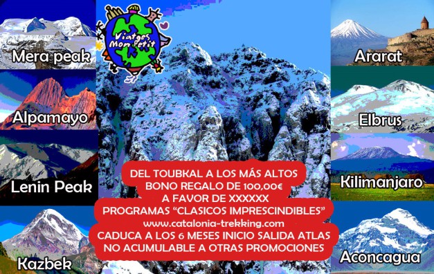 OFERTA ESPECIAL Y EXCLUSIVA DE "VIAJES MON PETIT" PARA NUESTRAS EDICIONES AL TOUBKAL. TE REGALAMOS UN BONO POR EL VALOR DE 100€ PARA OTRAS DE NUESTRAS MONTAÑAS CLÁSICAS - IMPRESCINDIBLES